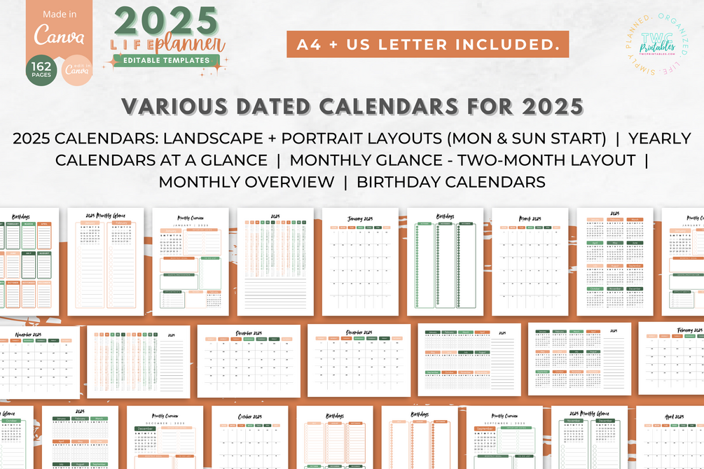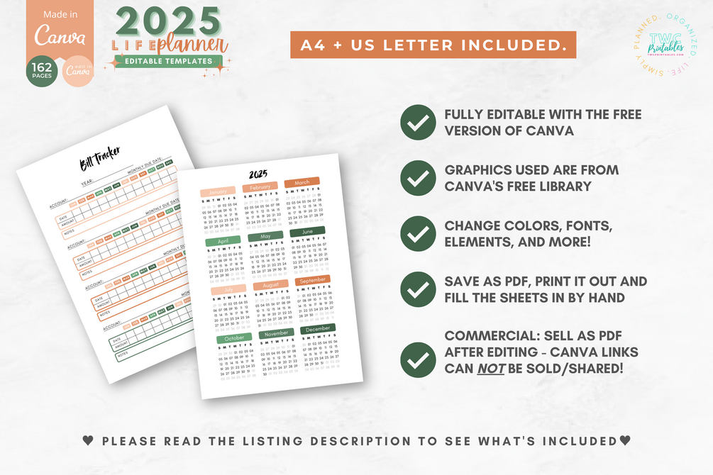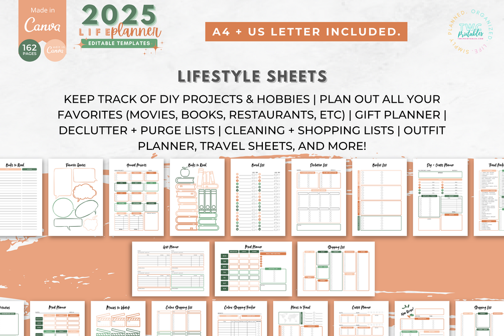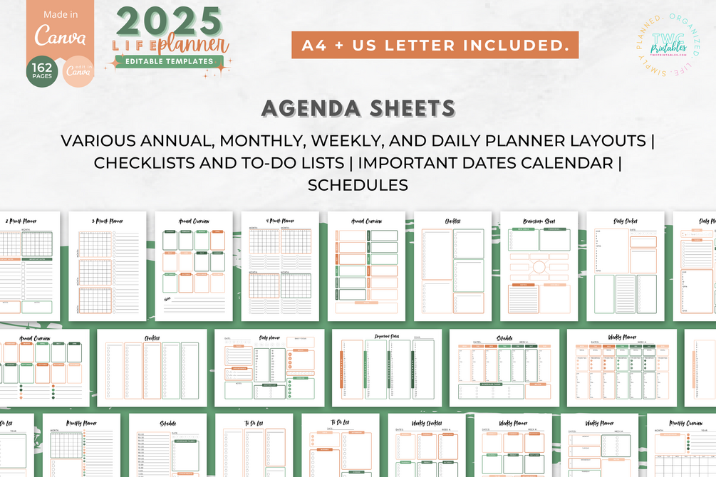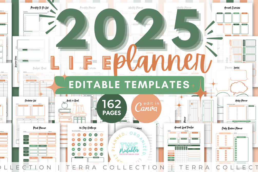 Looking for a planner that actually keeps up with your busy life? The 2025 Ultimate Planner is here to help you stay on track, crush your goals, and simplify your routines — all in one beautifully editable package. With 160+ fully customizable Canva templates, you can plan your year, set goals, manage your finances, track habits, and more!