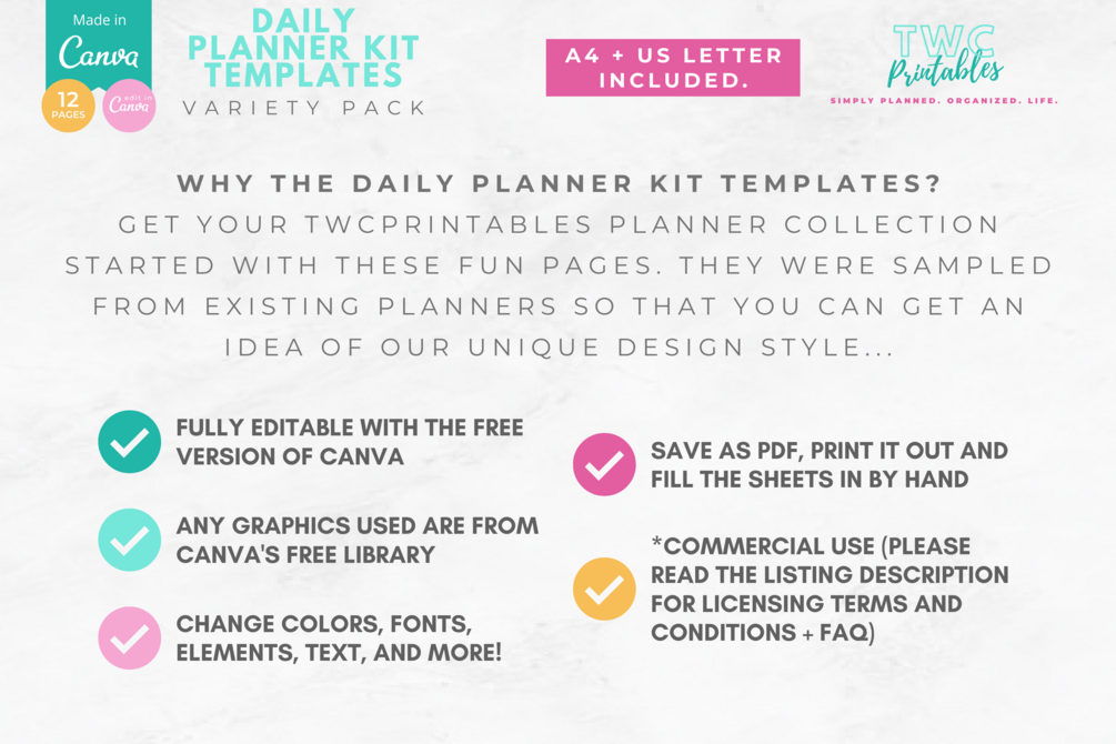 - Sell the final edited version as a printable planner (PDF/JPG)