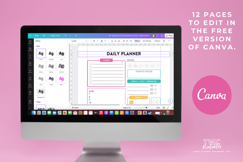 - Customize your planner inside Canva