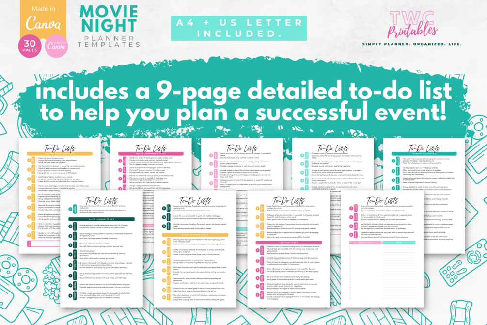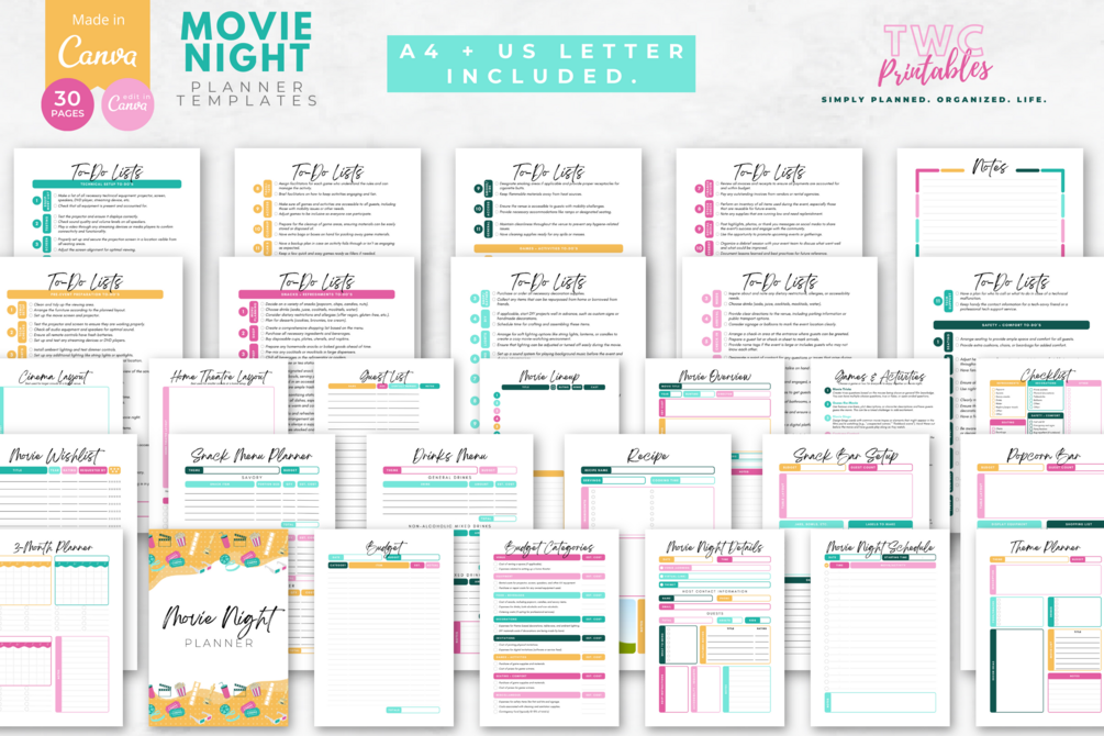 Whether you're planning a kids' movie night, a romantic date night, or a themed franchise binge β this planner gives you the structure and creativity to make it unforgettable.