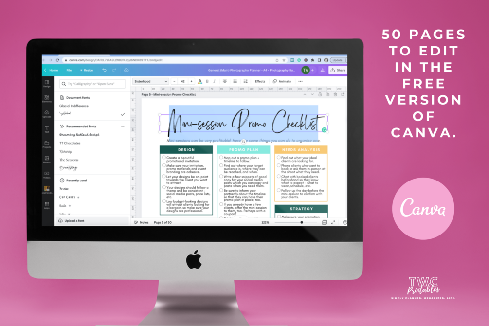 - Mini Session Planner, Day Planner, Schedule, Promo Checklist