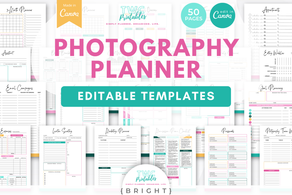Photography Planner Canva Templates | BRIGHT