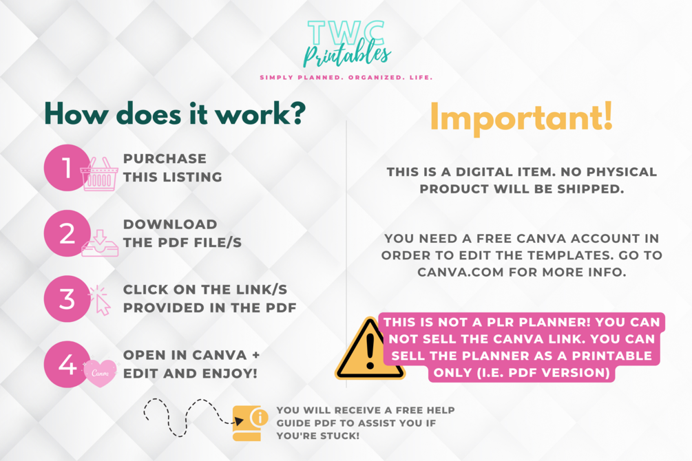 - Use the included Help Guide PDF if youβre new to Canva β visual step-by-step included