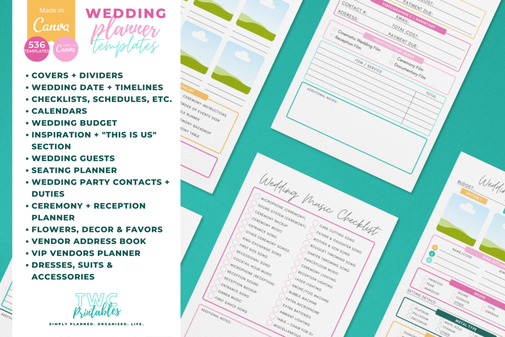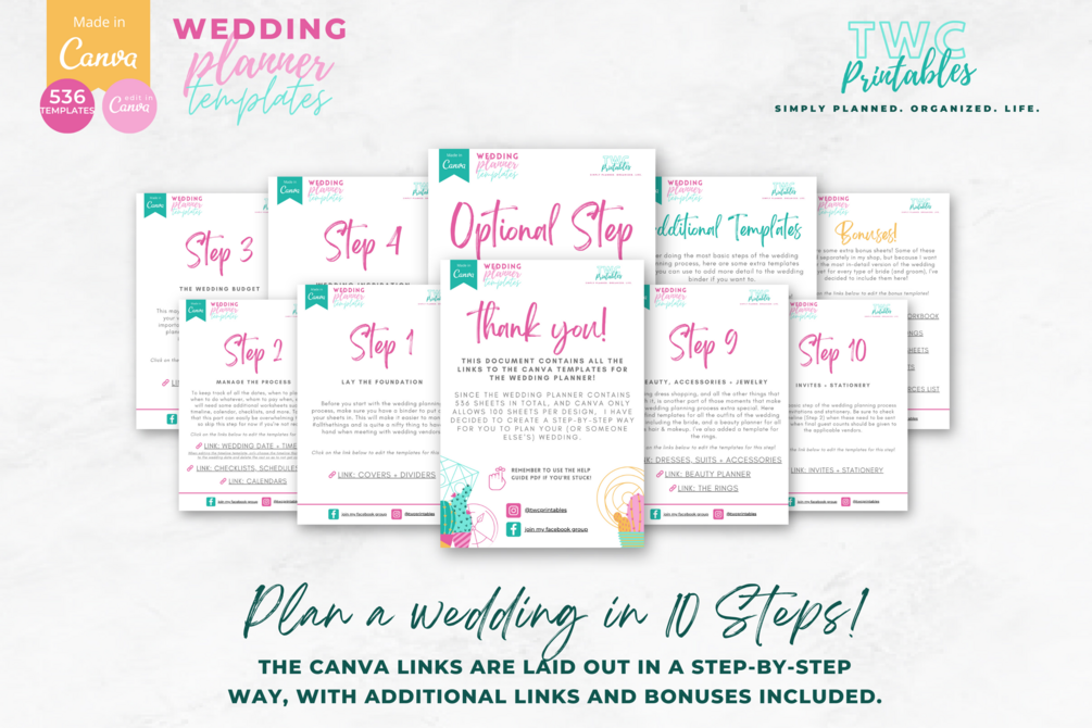 Perfect for building your own wedding planner binder or creating a personalized gift for an engaged friend. No Canva Pro needed β everything works with a free Canva account!
